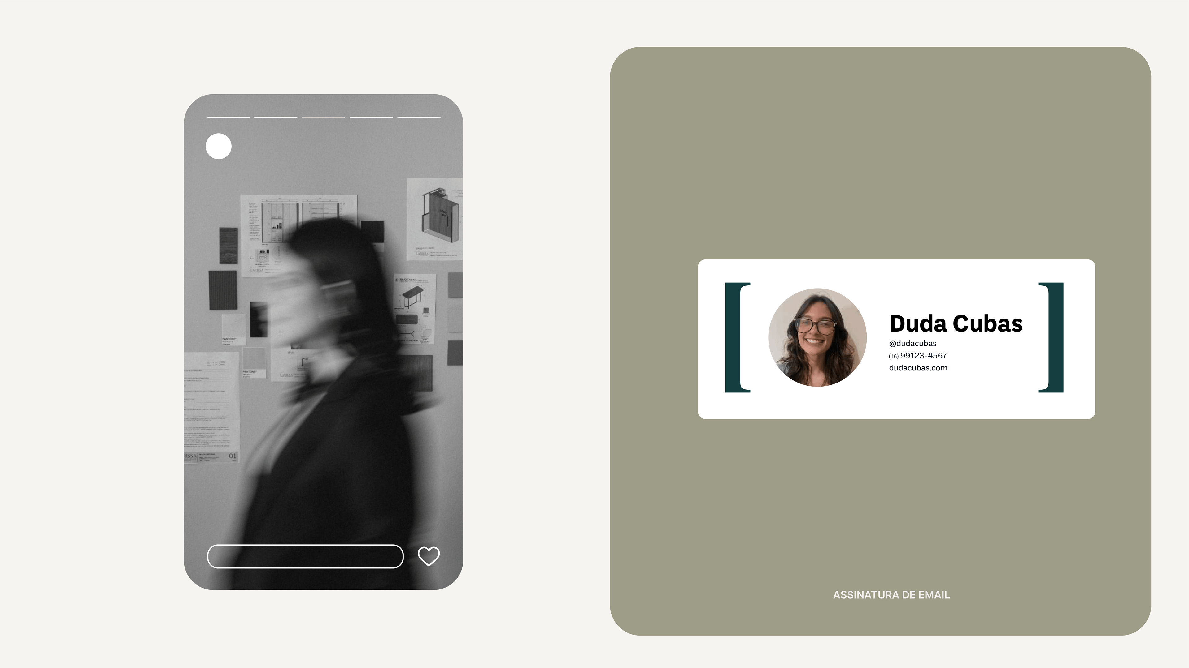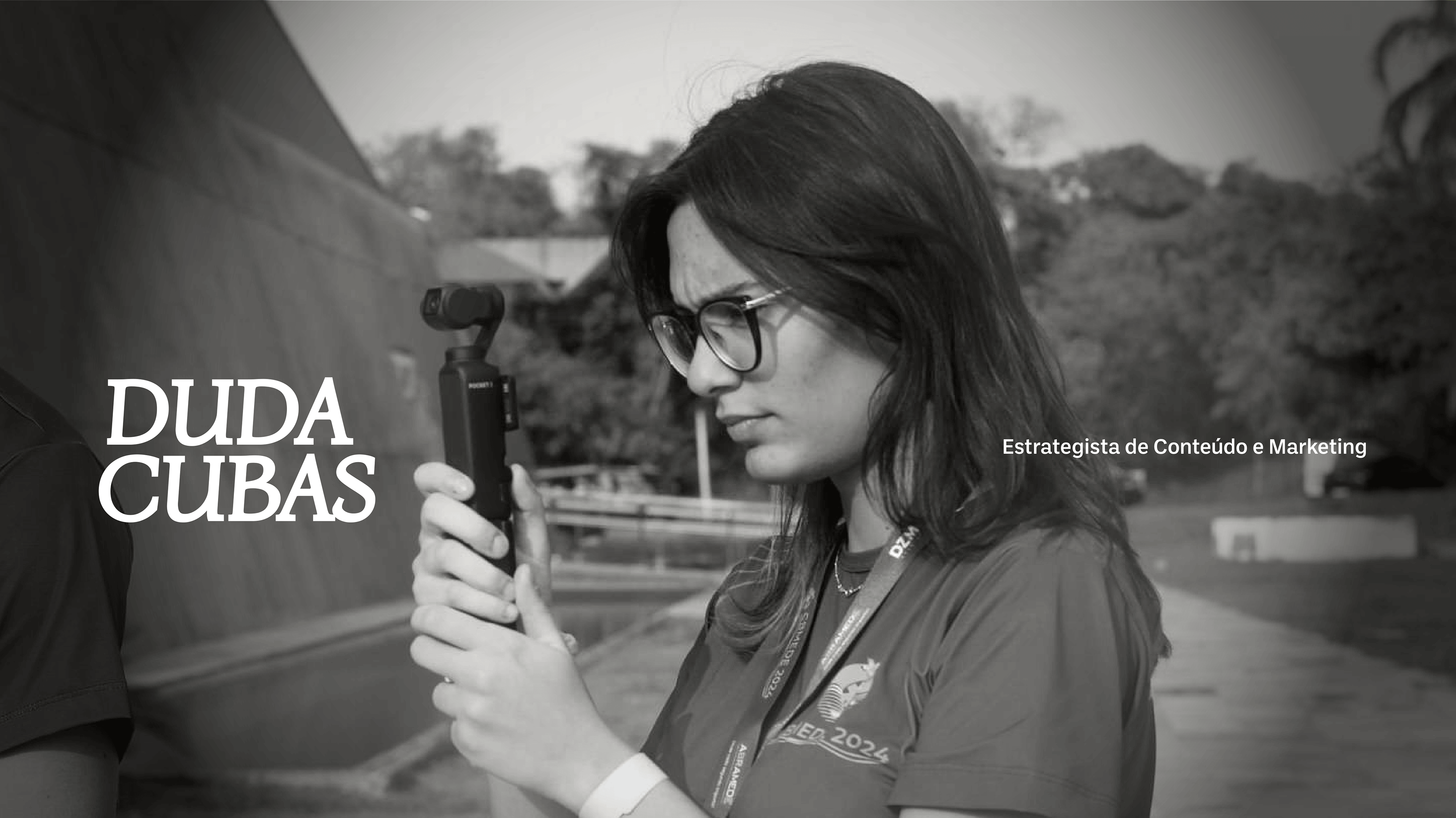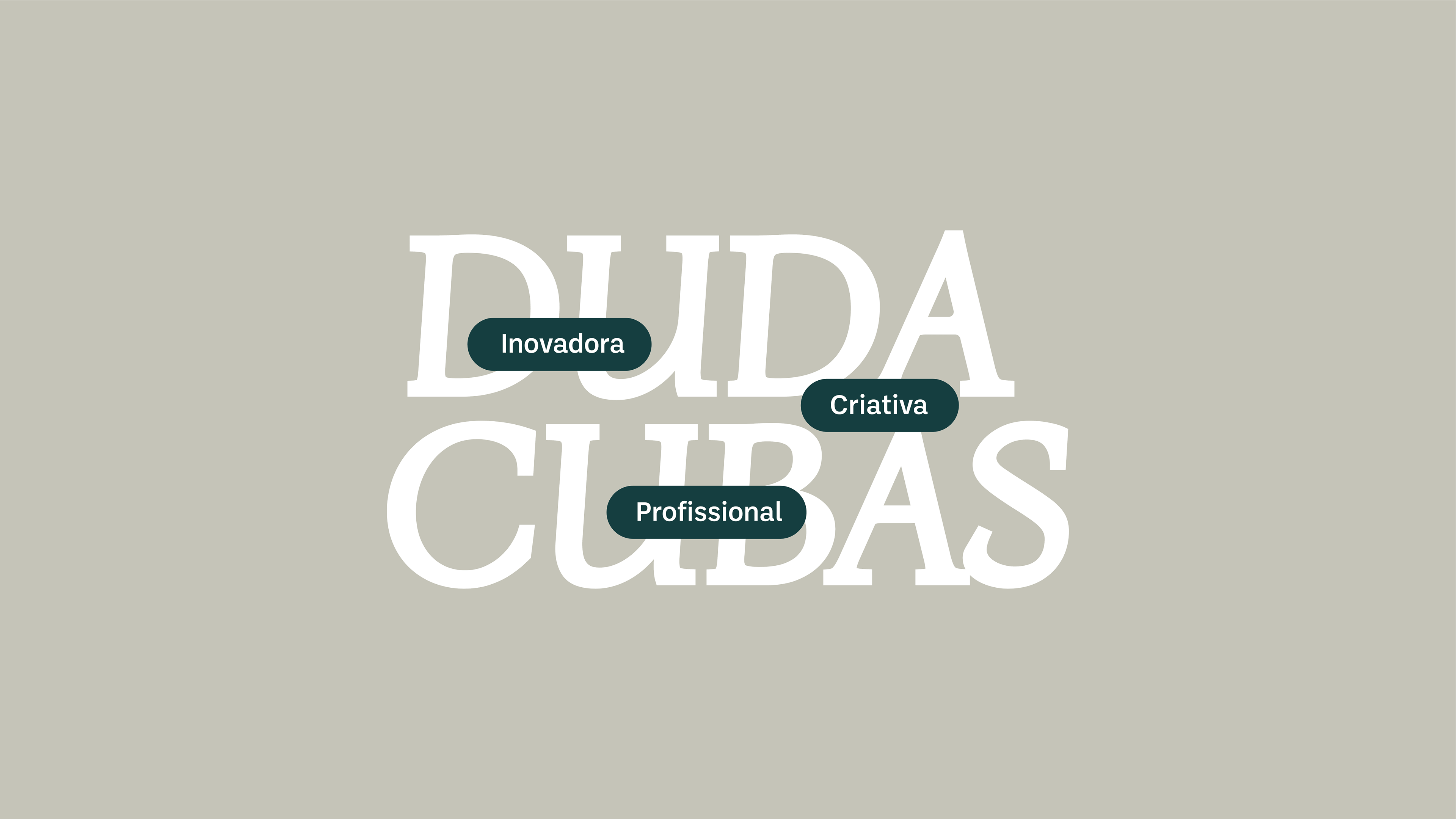 Duda Cubas é estrategista de conteúdo e atua conectando ideias, estrutura e comunicação estratégica. A identidade visual foi desenvolvida para refletir um pensamento analítico aliado a uma forte sensibilidade editorial, trazendo organização, direção e clareza para narrativas e posicionamentos de marca.